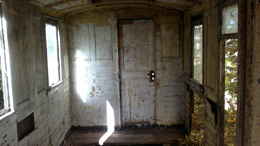 noch vorhandene Scheidewand im Lohsdorfer Wagen mit den Durchbrüchen